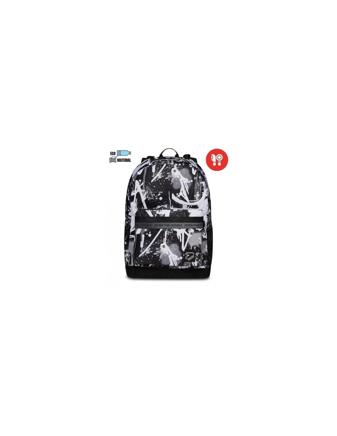 Con questo zaino reversibile Seven The Double, che include gli EARPHONES WIRELESS, hai 2 zaini in 1: il primo in fantasia con zip rifrangente, l’altro in tinta unita. Per rigirarlo tutte le volte che vuoi, staccando lo schienale, ti bastano poche semplici mosse. È realizzato in tessuto 100% poliestere riciclato, certificato GRS, ricavato da 29,5 bottiglie in PET da 500 ml ciascuna, garantendo tutti gli standard qualitativi dei nostri materiali. Entrambi i lati, in fantasia e in tinta unita, hanno una comoda tasca frontale e quello in fantasia ha anche una tasca laterale in rete ed elastico porta borraccia. Infine lo schienale è imbottito e, insieme agli spallacci imbottiti e traspiranti, rende lo zaino comodo da indossare sulle spalle.