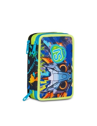 Astuccio 3 Zip SJ Gang Led Look - 2026 Perfetto per accompagnare le giornate scolastiche dei bambini, questo astuccio a triplo scomparto è la soluzione ideale per organizzare al meglio tutto l'occorrente. Con il suo design colorato, è pensato per bambini della scuola elementare. Realizzato in resistente tessuto di poliestere, questo astuccio unisce praticità e qualità, perfetto da abbinare a qualsiasi zaino scolastico.