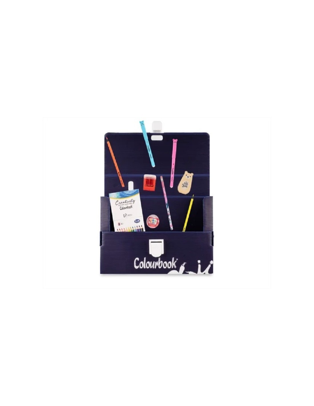 Ciascuna mini valigetta con accessori omaggio, contiene, al suo interno: 1 penna cancellabile Twist 1 temperamatite 2 fori con serbatoio 2 Matite evidenziatori Noir Fluo 1 correttore a nastro Kawaii 1 confezione 12 matite colorate Artist Grade 1 gommina Luna Park 1 matita matta 2 penne Cancellotte a sorpresa!