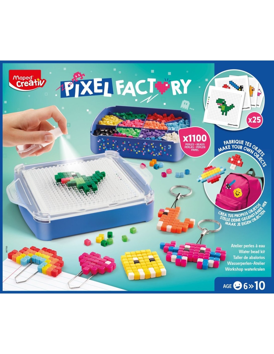 Gioco che trasforma le tue perle con l'acqua in accessori. Contiene: 1 stazione, 10 fogli modello (25 disegni), 1110 perle quadrate, 30 perle speciali, 1 spruzzatore, 12 accessori (clip, piastra, magnete, portachiavi, ecc.) e 1 manuale di istruzioni. Scopri l'affascinante mondo del design pixelato con il gioco Maped Creativ Pixel Factory. Questo gioco innovativo permette ai bambini di trasformare piccole perle in design e accessori sorprendenti, stimolando la loro creatività e le capacità motorie divertendosi. Concetto creativo: Progetta e crea immagini pixelate ispirate all'arte dei videogiochi retrò, sviluppando capacità di coordinazione, creatività e pazienza. Componenti inclusi: Il set contiene 1 stazione, 10 fogli modello con 25 disegni, 1110 perle quadrate, 50 perle speciali, 1 spruzzatore, 12 accessori assortiti come clip e portachiavi e un manuale di istruzioni. Sviluppo delle competenze: incoraggia lo sviluppo delle capacità motorie fini e la capacità di seguire schemi, e funge anche da introduzione ai concetti matematici di base. Età consigliata: ideale per bambini in età scolare, dai 5 o 6 anni in su, con la supervisione di un adulto. Materiali sicuri: realizzato con materiali plastici atossici e bordi lisci, sicuro per l'uso da parte dei bambini. Filosofia educativa: parte della filosofia di Maped di combinare apprendimento e divertimento, consentendo ai bambini di esplorare concetti educativi mentre giocano. Il gioco Maped Creative Pixel Factory non è solo un'attività divertente, ma anche un prezioso strumento educativo. Incoraggia l'immaginazione e l'apprendimento, trasformando ogni sessione di gioco in un'opportunità per crescere e scoprire nuove competenze.